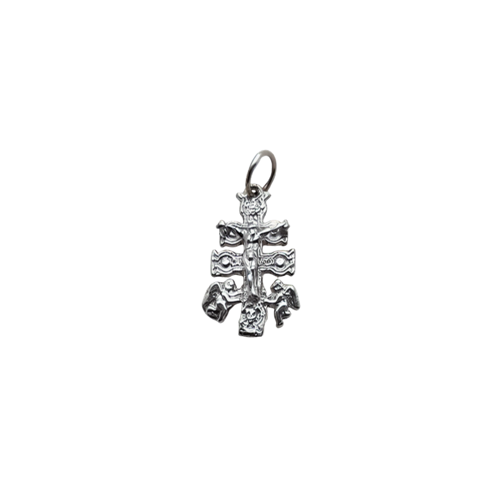 Carry a symbol of deep faith and devotion with this Caravaca Cross Pendant. Featuring the crucifix with dual crossbars and two angels at the base, this design is rich in spiritual meaning and tradition. A cherished devotional emblem, it makes a meaningful gift or a treasured personal keepsake. Available in 14k yellow or white gold, as well as sterling silver.