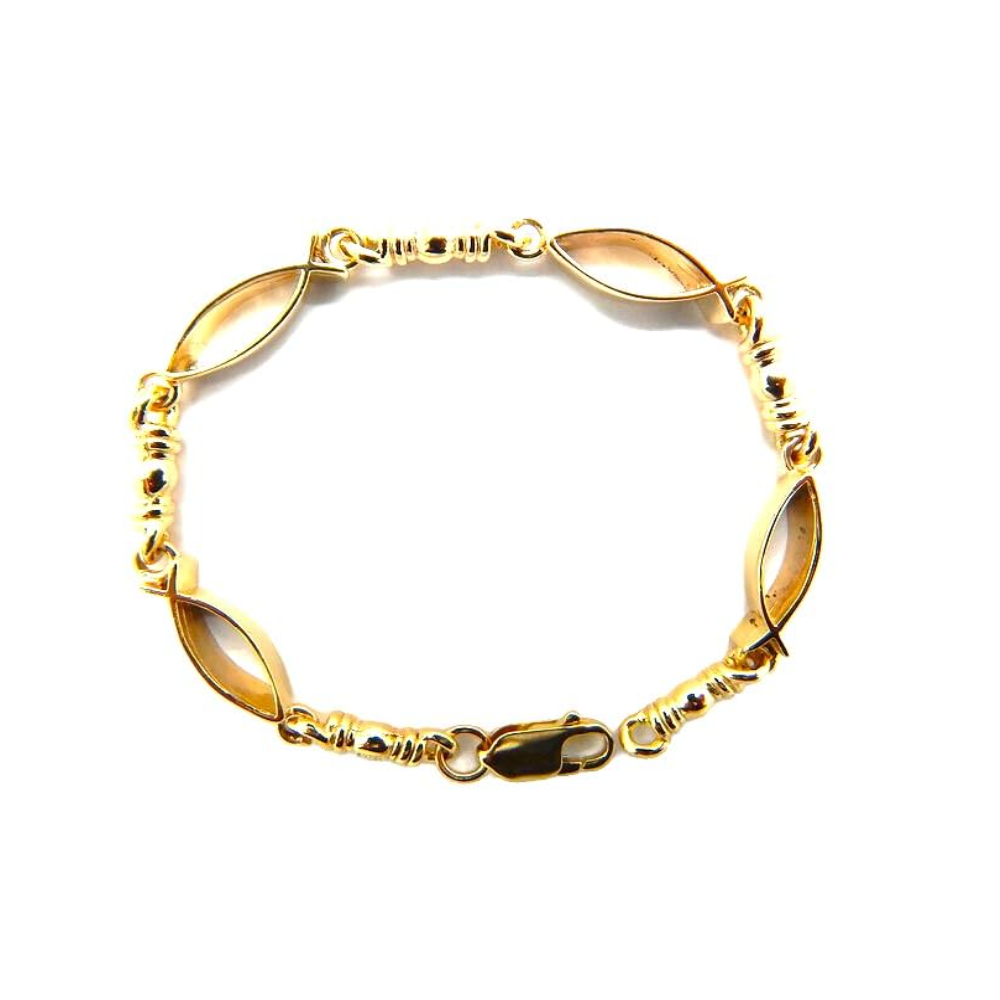 This handcrafted bracelet showcases a refined fish-link design, paired with sleek barrel accents for a timeless, elegant finish. Whether in brilliant gold or classic sterling silver, this piece offers everyday luxury and lasting style.