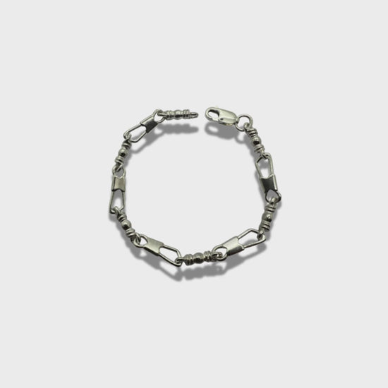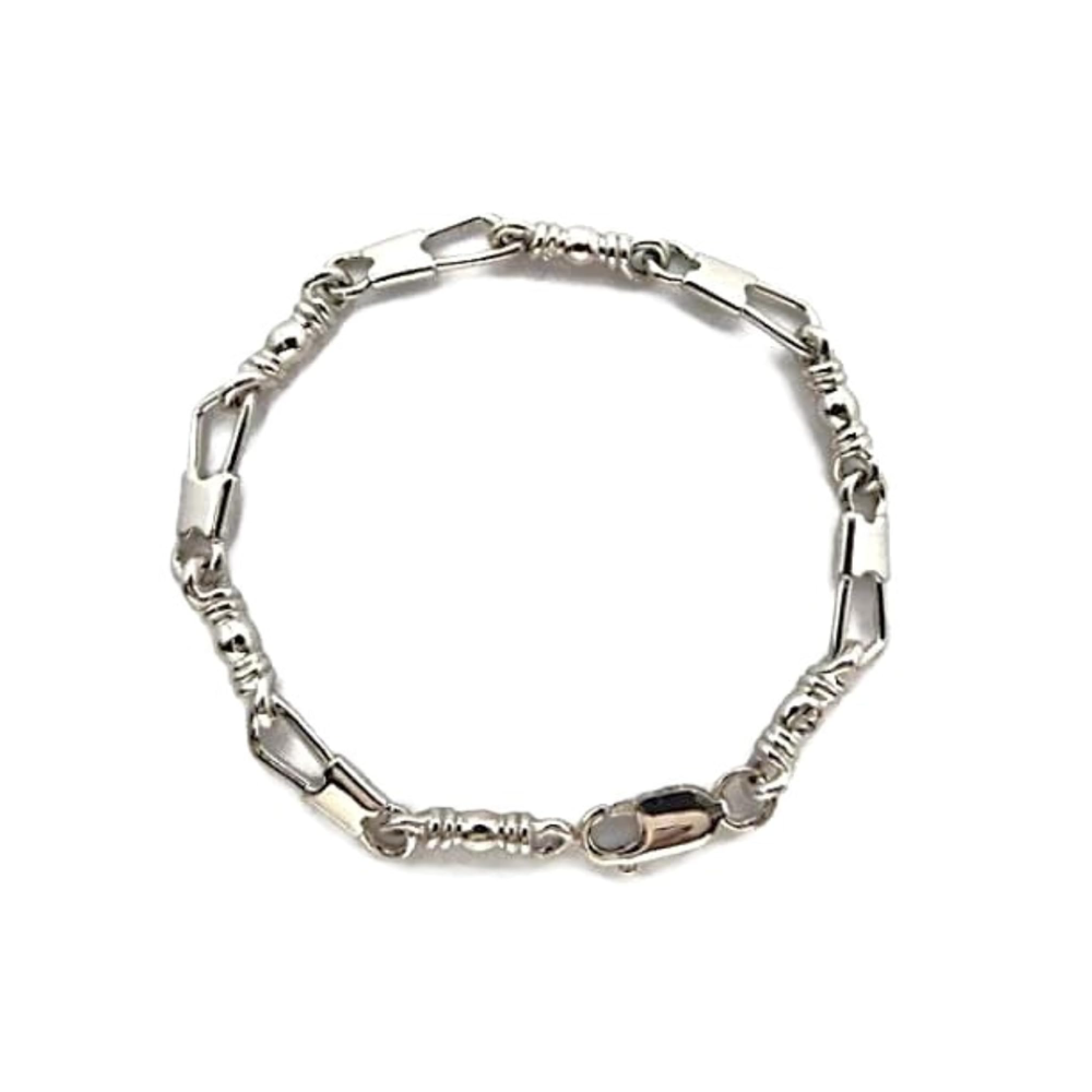 This handcrafted bracelet showcases a refined fish-link design, paired with sleek barrel accents for a timeless, elegant finish. Whether in brilliant gold or classic sterling silver, this piece offers everyday luxury and lasting style.