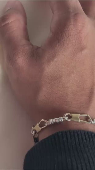 This handcrafted bracelet features our original Fishers of Men design, available in a striking two-tone combination of gold and silver with medium-width sized links. Made in the USA with exceptional craftsmanship, each bracelet includes a solid gold lobster clasp and is offered in both 10K and 14K yellow gold paired with .925 sterling silver.