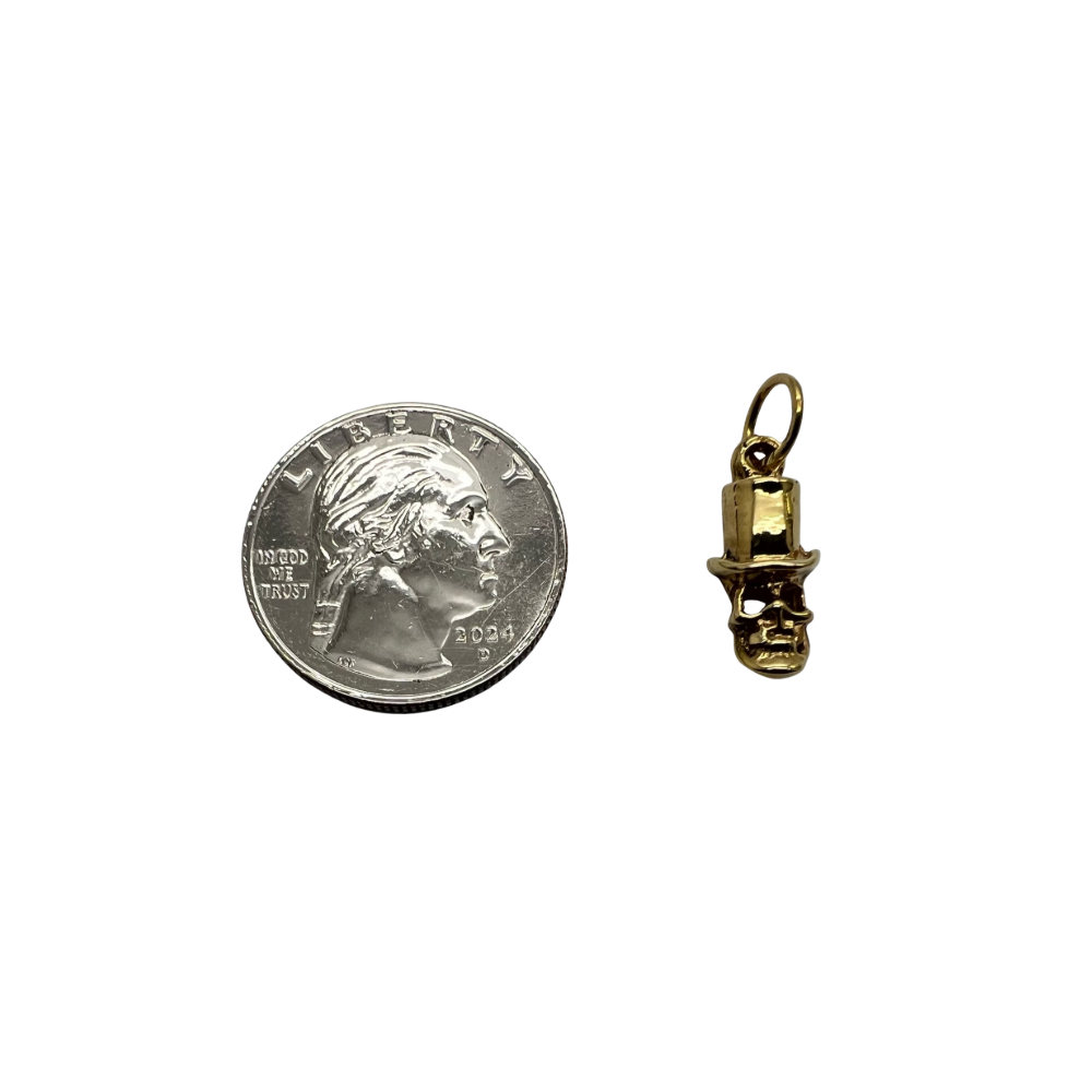Bring a dash of gothic elegance and vibrant tradition to your collection with this Dia de los Muertos–inspired Skull & Top Hat Pendant. Featuring a finely detailed skull wearing a classic top hat, this striking charm adds bold, vintage-inspired flair to any look. Perfect for lovers of unique character jewelry or those seeking an edgy statement — available in 14k yellow gold, 14k white gold, and sterling silver.